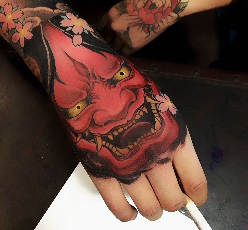 手背般若纹身图片_手部手臂新传统般若纹身图案