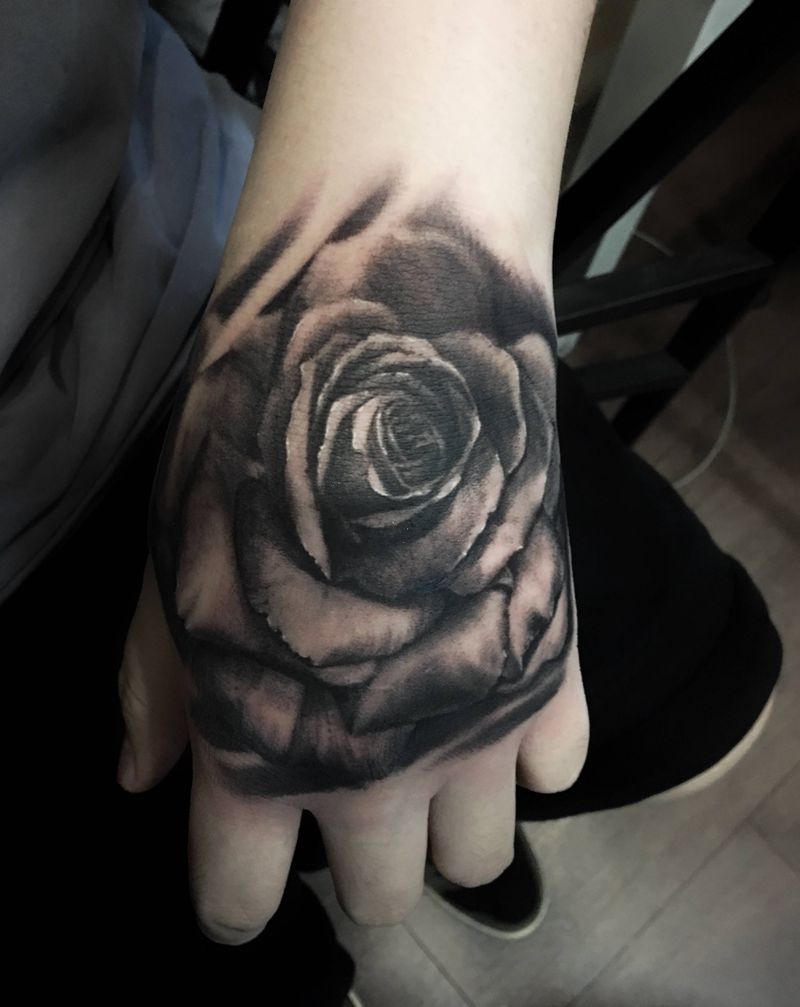 玫瑰纹身图片_手部手臂欧美写实纹身图案