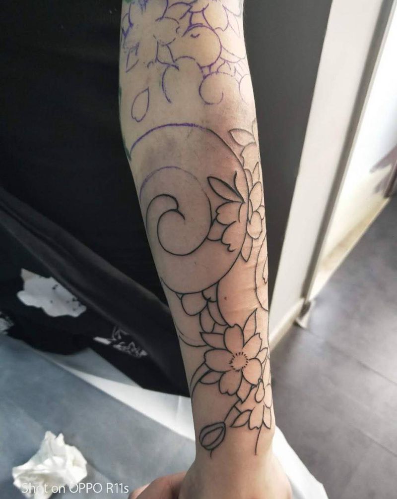 当前位置: 首页 >广东省韶关市纹身店-将也刺青TATTOOSTUDIO纹身图案>花臂线条纹身图片