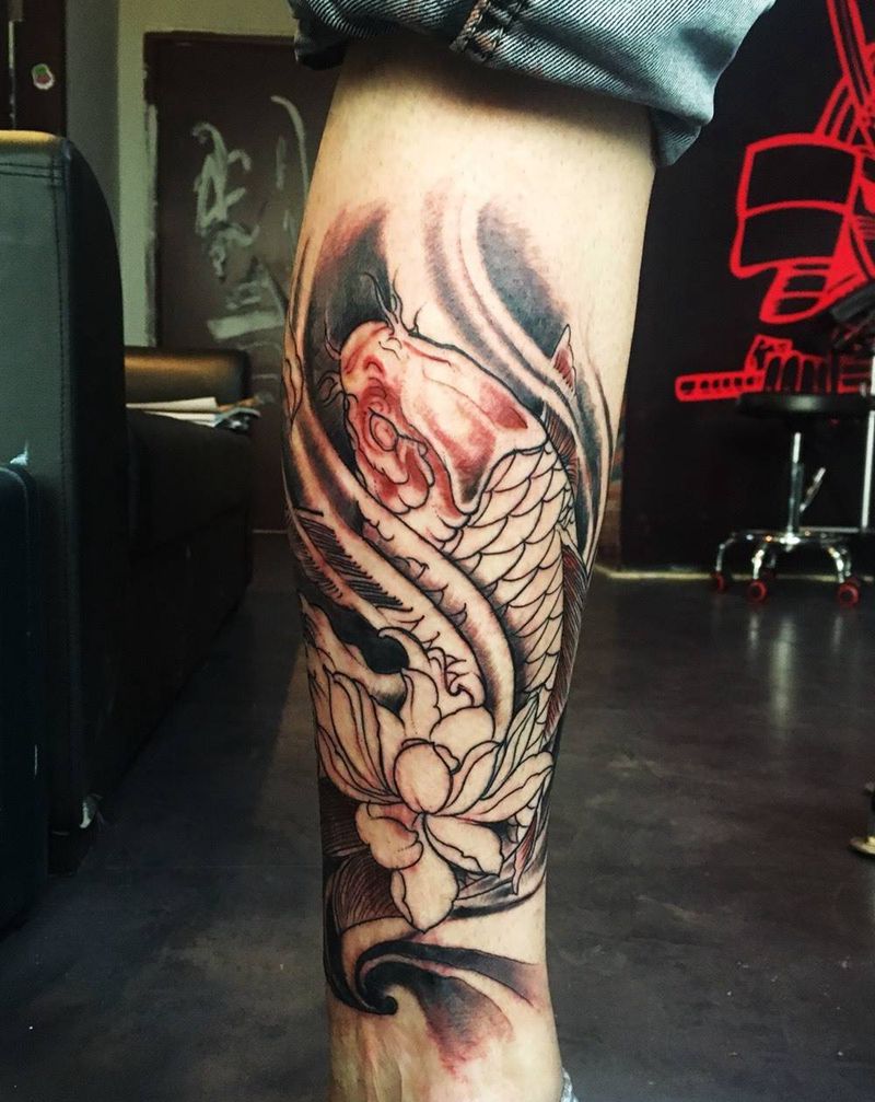 • T网红王老大花腿龙纹身图片_腿部新传统纹身图案
