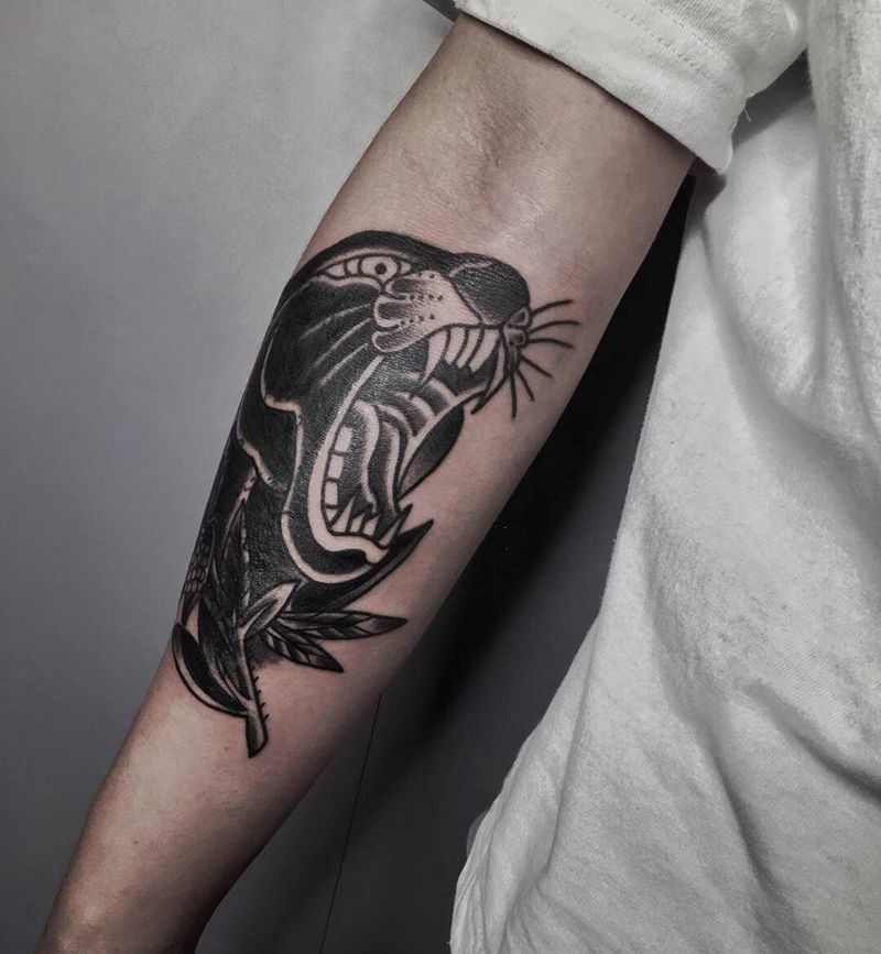 old school梵花豹子纹身图片_手臂手部Old School几何纹身图案