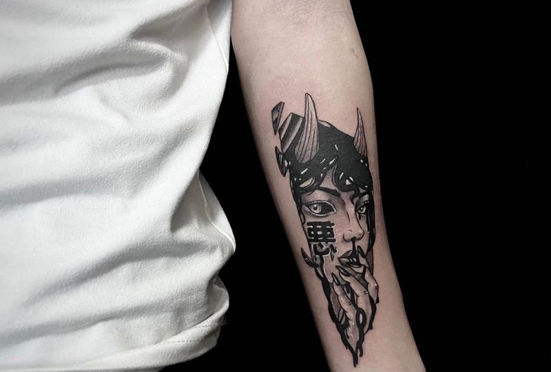 当前位置: 首页 >广东省深圳市纹身店-文人墨刻Tattoo Studio纹身图案>暗黑纹身图片_手臂暗黑 美女纹身图案