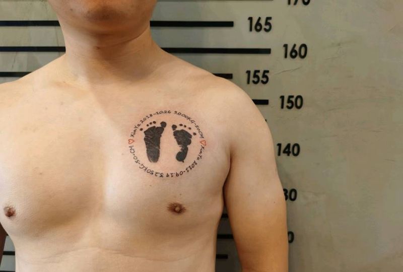 脚印纹身图片_胸部水墨纹身图案