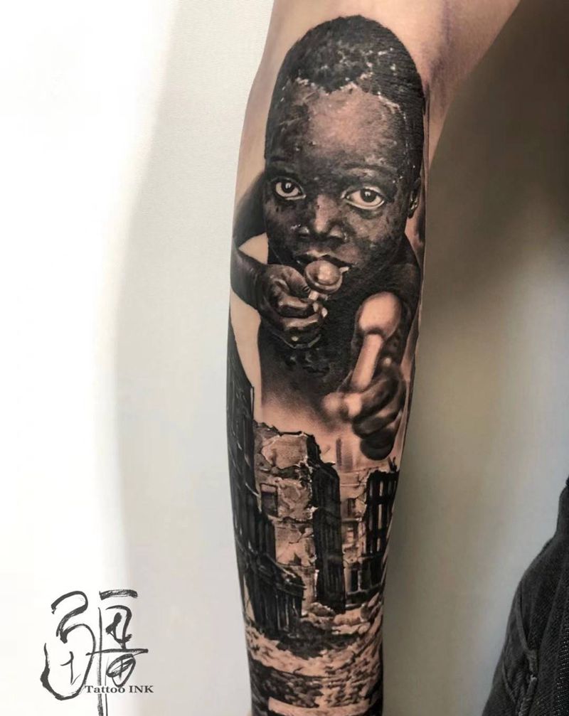 当前位置: 首页 >广东省深圳市纹身店-疆刺纹身工作室纹身图案>HOPE纹身图片_手臂手部欧美写实纹身图案