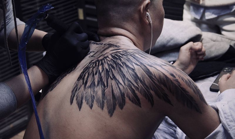 展翅纹身图片_背部肩部欧美写实纹身图案