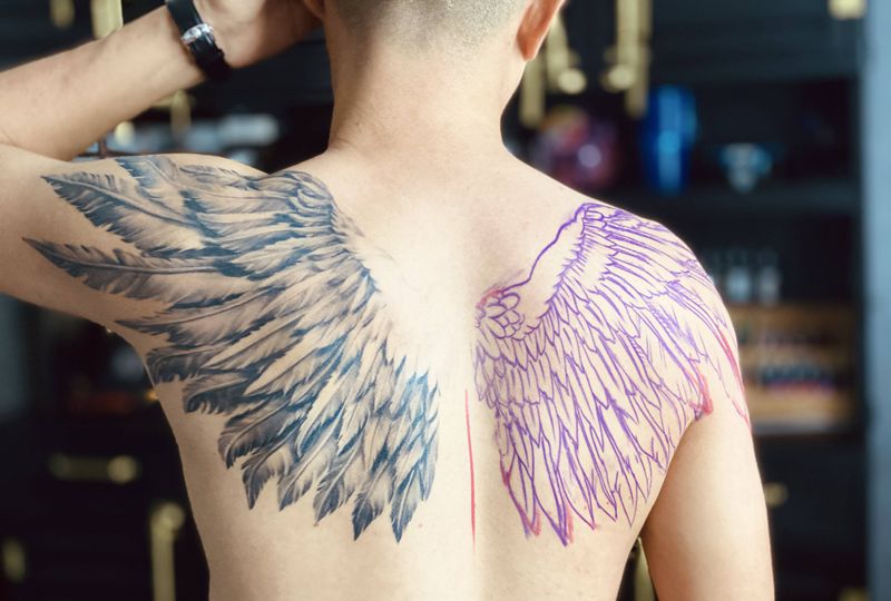 展翅纹身图片_背部肩部欧美写实纹身图案