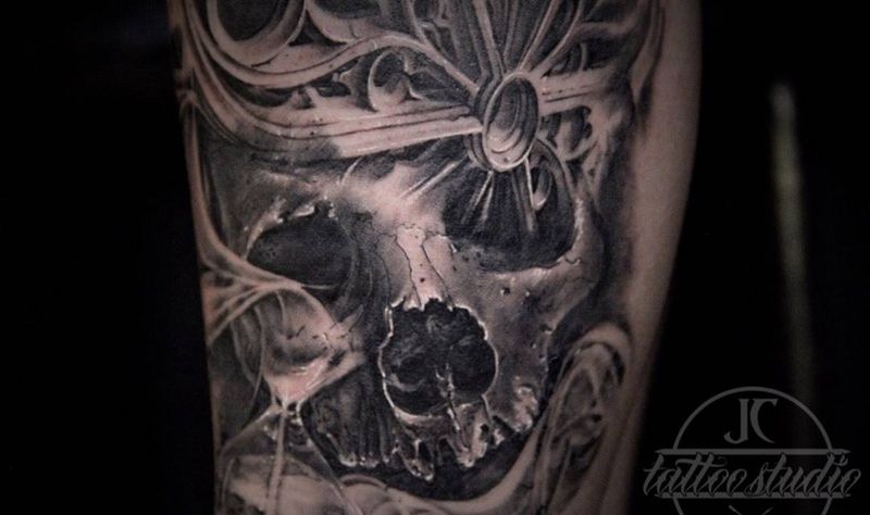 当前位置: 首页 >广东省深圳市纹身店-疆刺纹身工作室纹身图案>生命纹身图片_成品腿部脚部欧美写实鬼神原创人物纹身图案