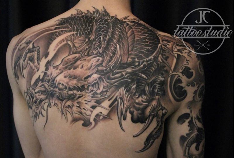 当前位置: 首页 >广东省深圳市纹身店-疆刺纹身工作室纹身图案>半背龙纹身图片_手部背部新传统老传统纹身图案