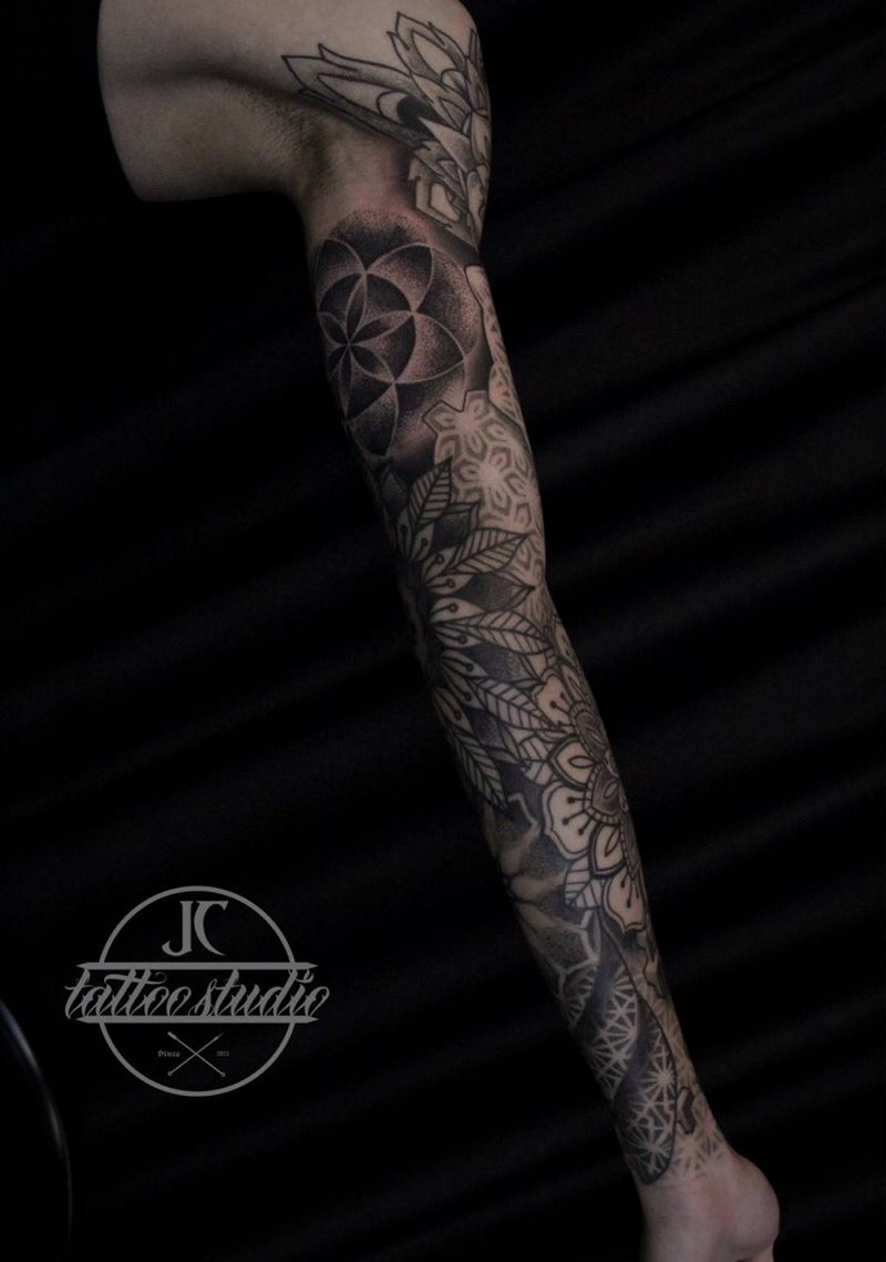 当前位置: 首页 >广东省深圳市纹身店-疆刺纹身工作室纹身图案>曼陀羅花臂纹身图片_手部手臂欧美写实点刺纹身图案