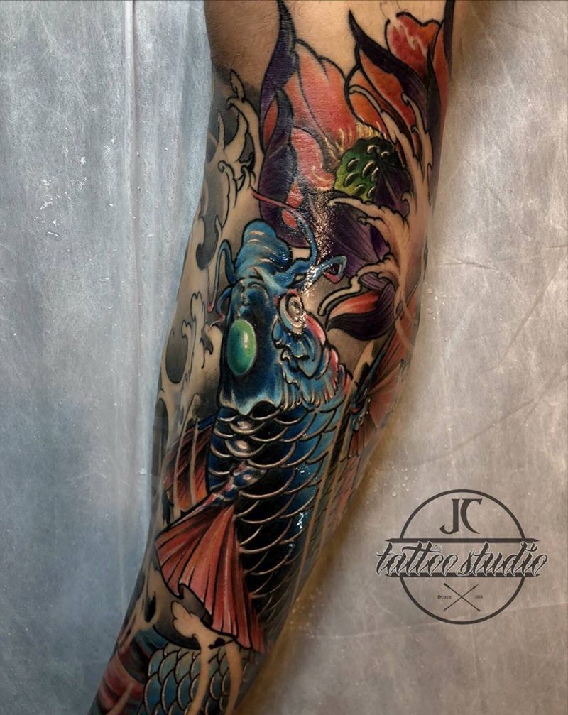 • T网红王老大花腿龙纹身图片_腿部新传统纹身图案