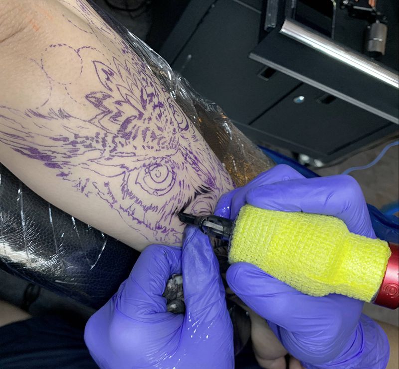 当前位置: 首页 >广东省深圳市纹身店-疆刺纹身工作室纹身图案>貓頭鷹纹身图片_手臂手部欧美写实纹身图案
