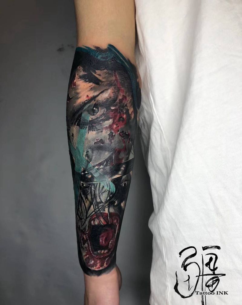 当前位置: 首页 >广东省深圳市纹身店-疆刺纹身工作室纹身图案>尖叫纹身图片_手臂手部欧美写实水彩纹身图案