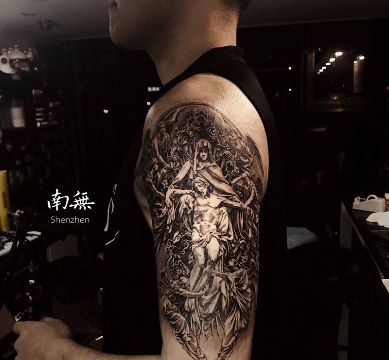 当前位置: 首页 >广东省深圳市纹身店-深圳南無刺青纹身图案>圣母怜子纹身图片_手臂欧美写实纹身图案