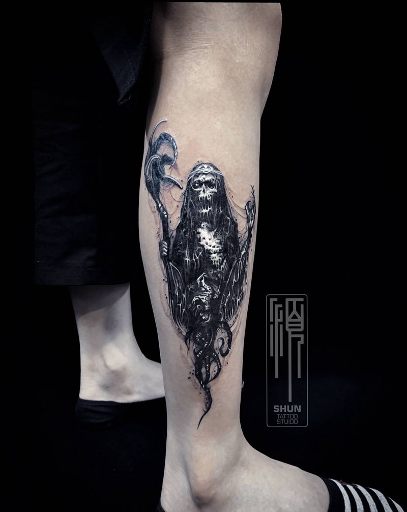 当前位置: 首页 >广东省深圳市纹身店-顺刺青纹身图案>暗黑系纹身图片_腿部纹身图案