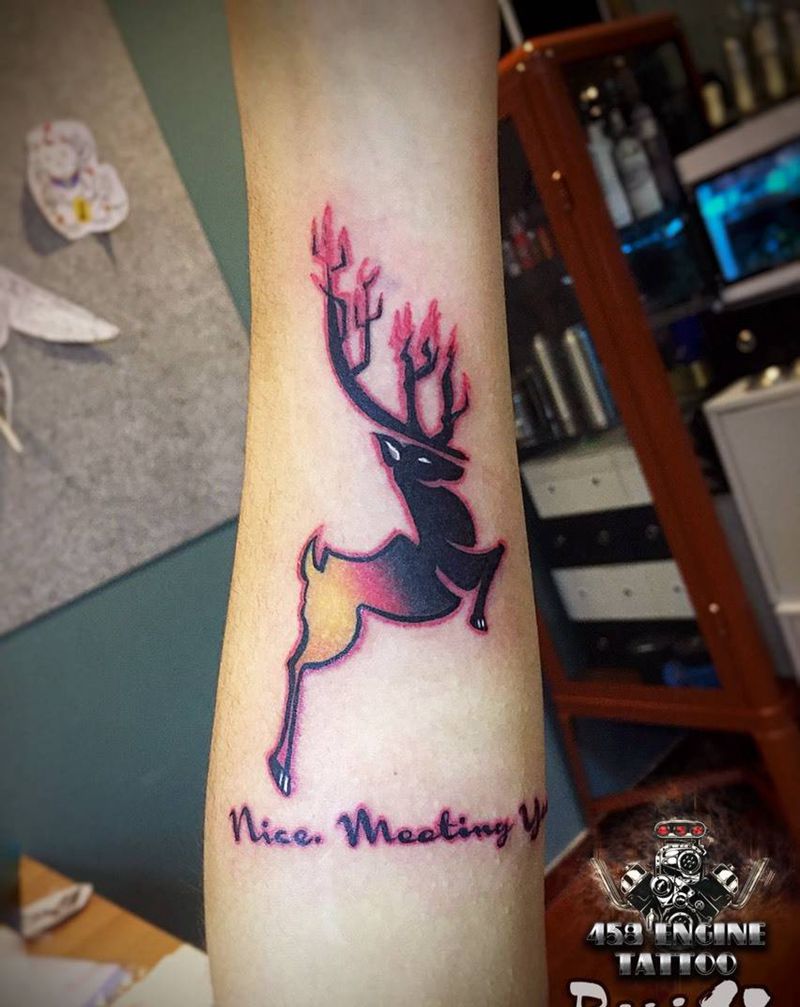 当前位置: 首页 >广东省深圳市纹身店-顺刺青纹身图案>彩色麋鹿荧光版纹身图片_成品清新手臂动物欧美插画纹身图案