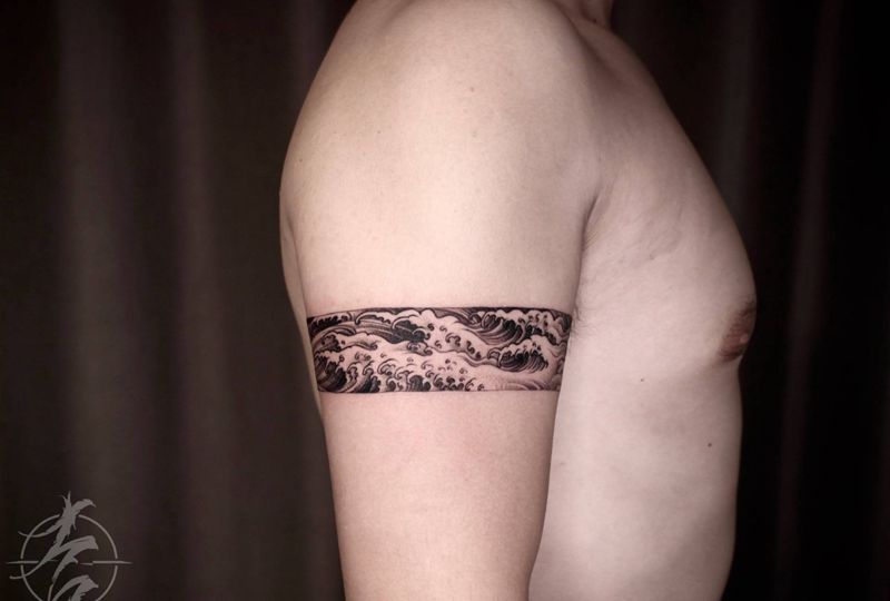 水浪纹身图片_手臂点刺新传统纹身图案