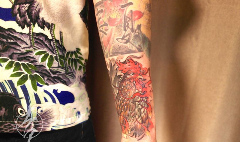 当前位置: 首页 >广东省深圳市纹身店-雨沫刺青纹身图案>公鸡纹身图片_手臂手部新传统New School公鸡鸡纹身图案
