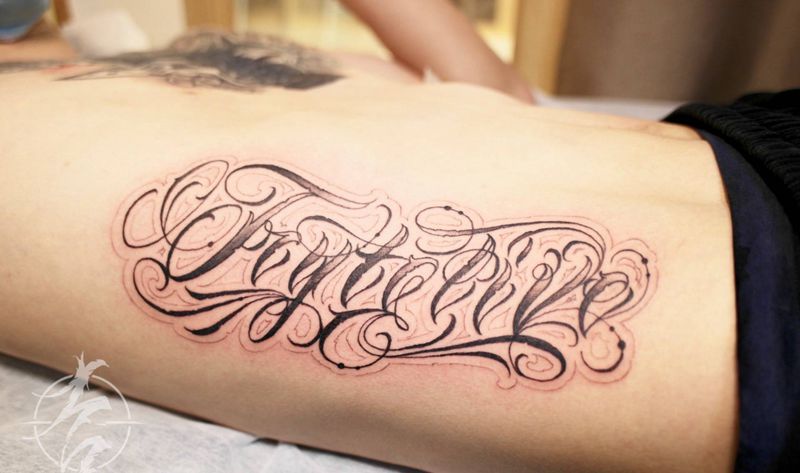 当前位置: 首页 >广东省深圳市纹身店-雨沫刺青纹身图案>花体字纹身图片_腹部腰部花体字花体字纹身图案