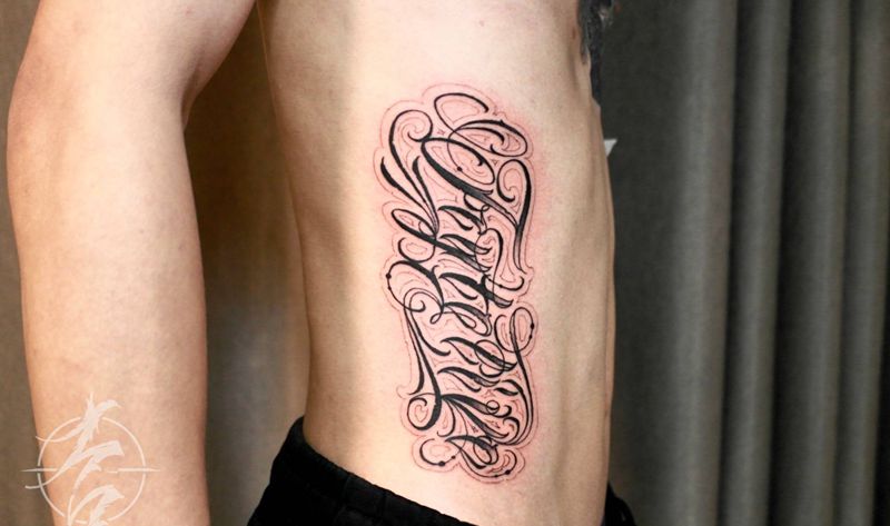 当前位置: 首页 >广东省深圳市纹身店-雨沫刺青纹身图案>花体字纹身图片_腹部腰部花体字花体字纹身图案