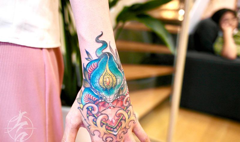 当前位置: 首页 >广东省深圳市纹身店-雨沫刺青纹身图案>蛇➕宝石纹身图片_手臂手部New School蛇宝石纹身图案