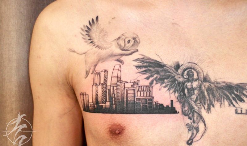 当前位置: 首页 >广东省深圳市纹身店-雨沫刺青纹身图案>风景写实遮盖纹身图片_胸部腰部欧美写实几何建筑纹身图案