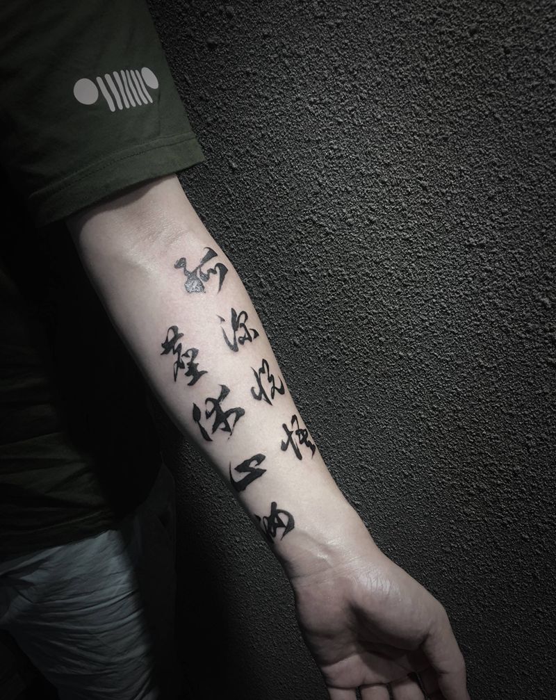 当前位置: 首页 >广东省深圳市纹身店-肆月TATTOO纹身图案>毛笔字纹身图片_手臂图腾纹身图案