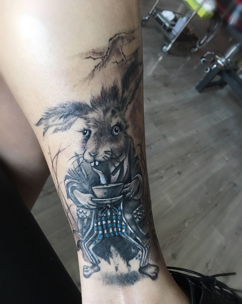 当前位置: 首页 >广东省深圳市纹身店-肆月TATTOO纹身图案>(兔先生)遮盖纹身图片_腿部欧美写实纹身图案