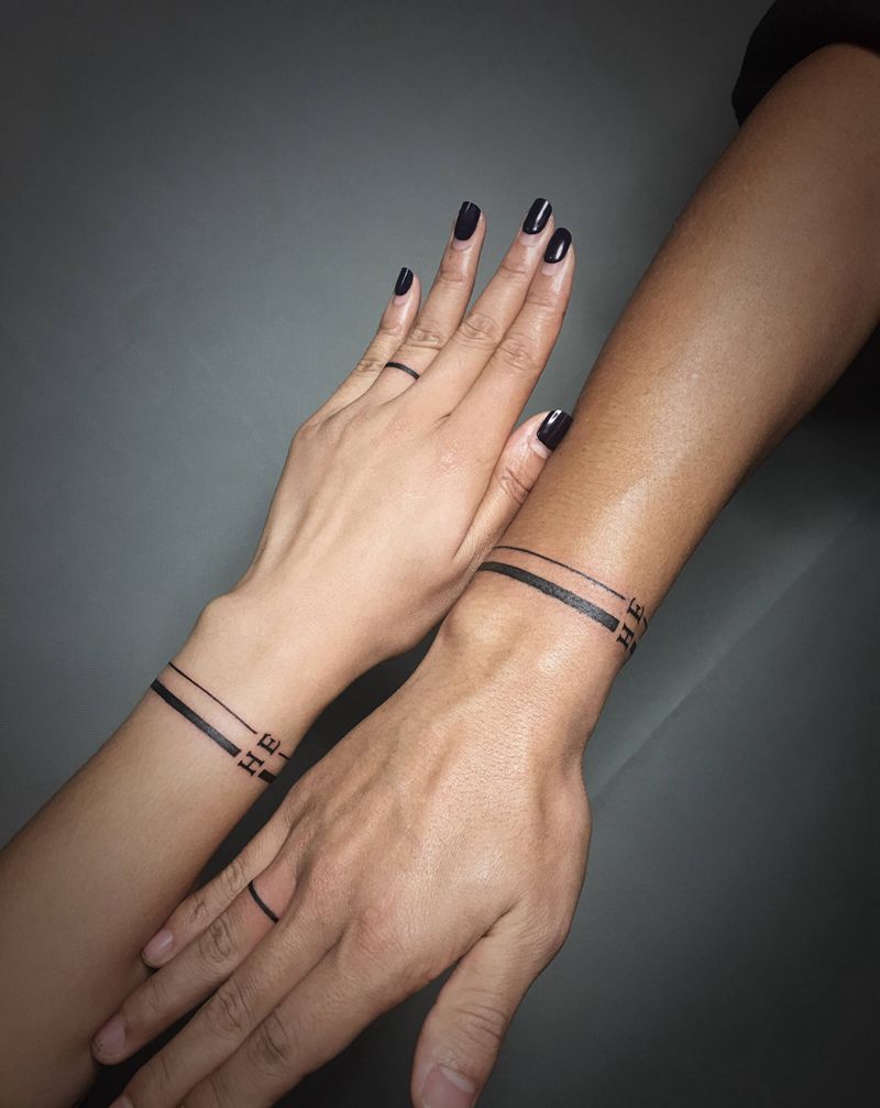 情侣线条纹身图片_手部手臂图腾几何纹身图案