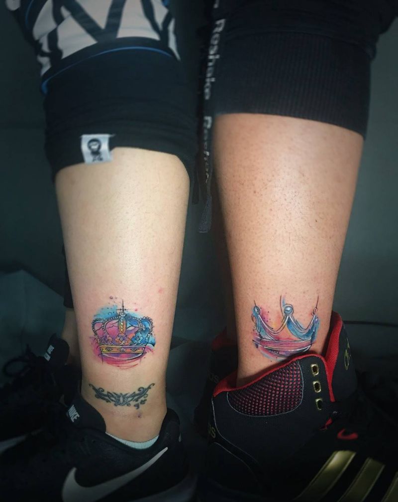 情侣皇冠纹身图片_脚部腿部水彩水墨纹身图案