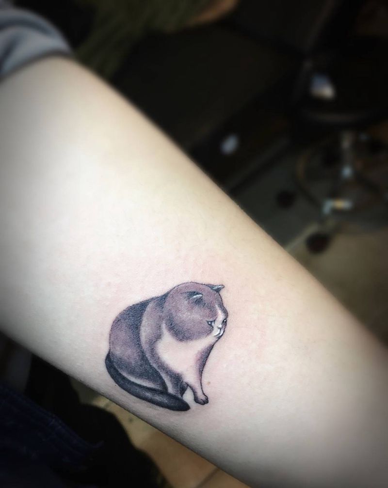 肥猫猫纹身图片_手臂成品清新动物纹身图案