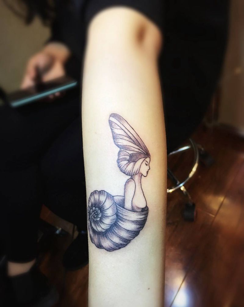 当前位置: 首页 >广东省深圳市纹身店-肆月TATTOO纹身图案>螺仙纹身图片_成品手臂清新鬼神人物纹身图案