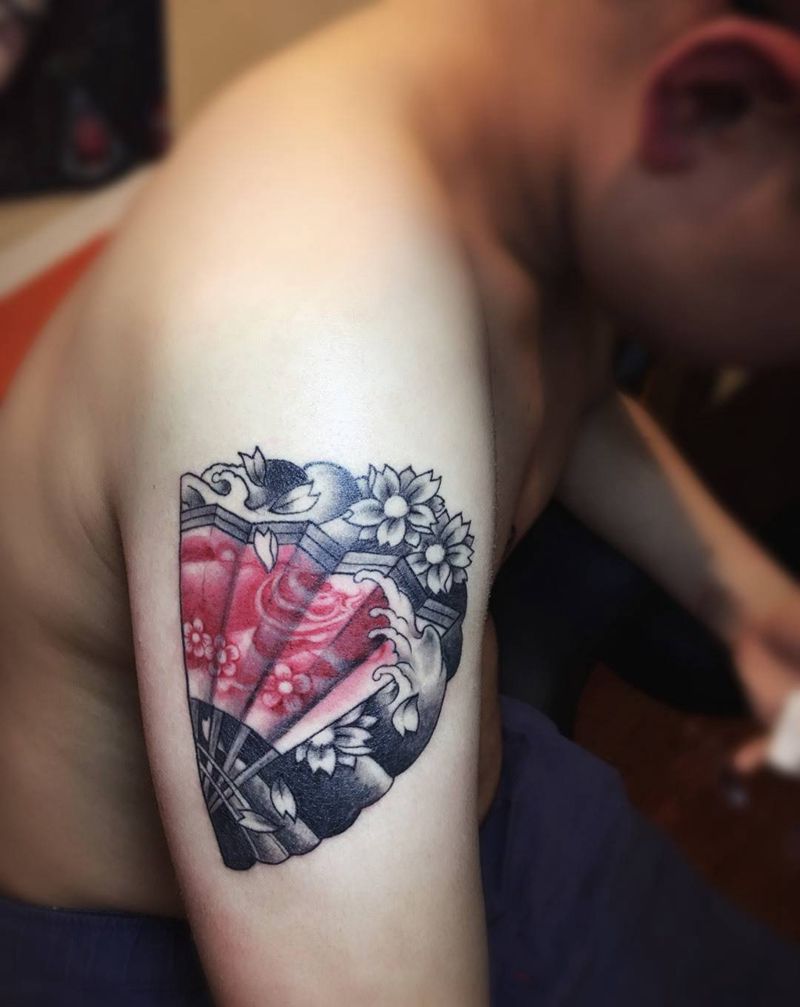 半扇纹身图片_成品手臂传统静物纹身图案