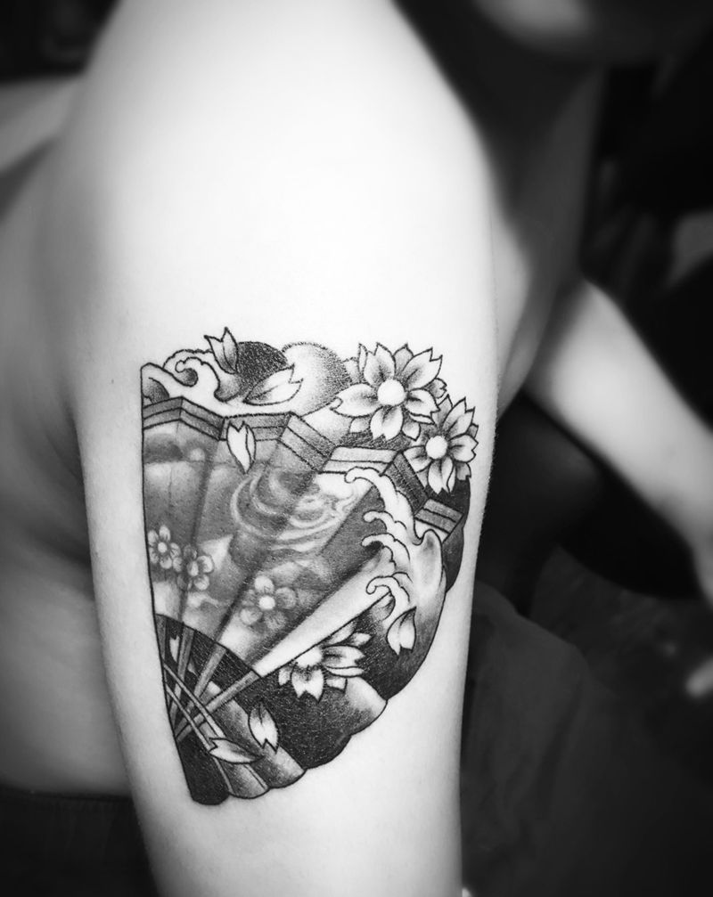 半扇纹身图片_成品手臂传统静物纹身图案