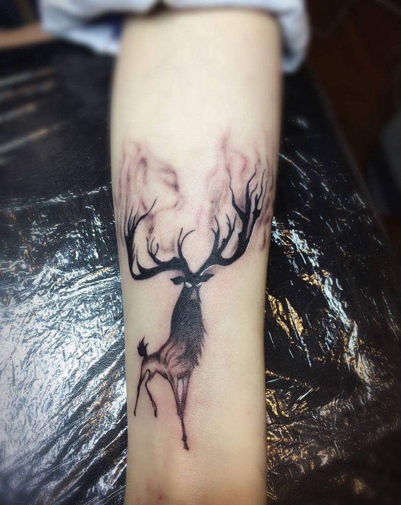 当前位置: 首页 >广东省深圳市纹身店-肆月TATTOO纹身图案>鹿纹身图片_手臂清新动物成品纹身图案