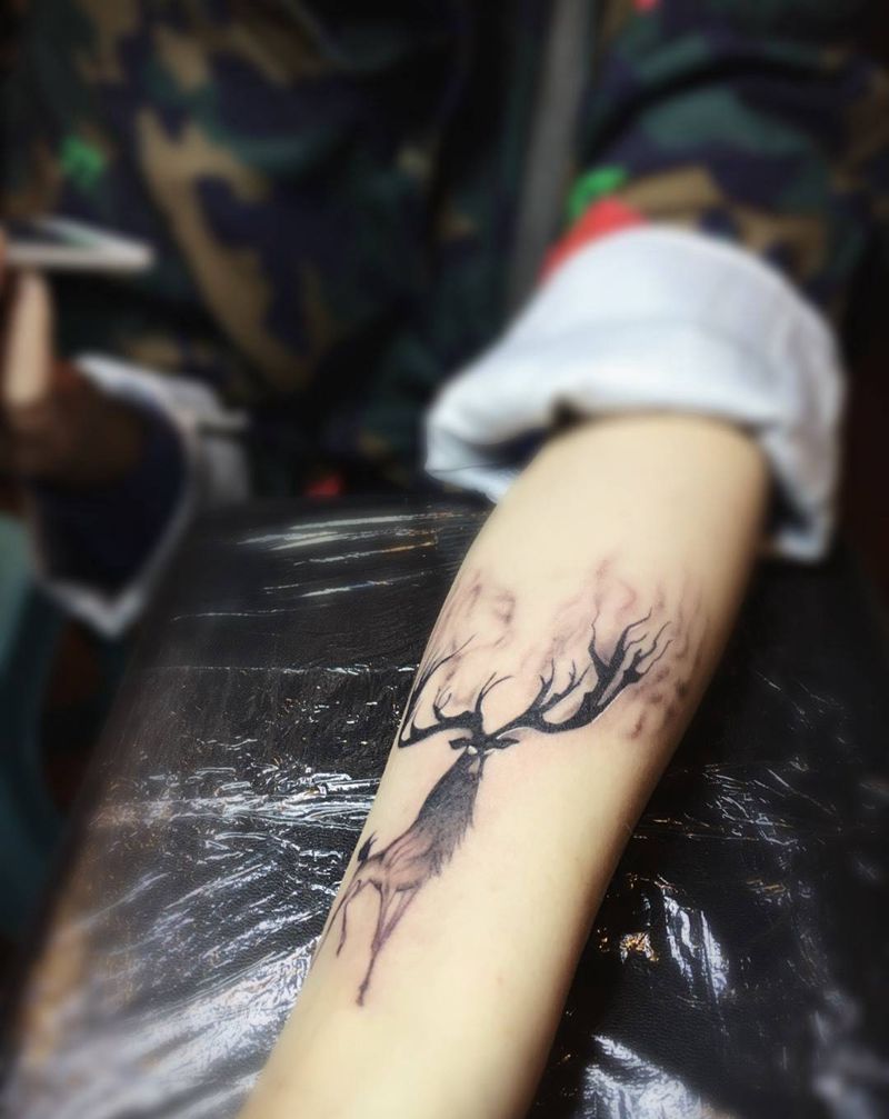 当前位置: 首页 >广东省深圳市纹身店-肆月TATTOO纹身图案>鹿纹身图片_手臂清新动物成品纹身图案