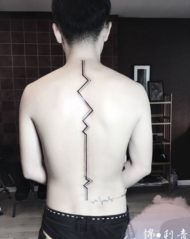 线纹身图片_成品背部几何纹身图案