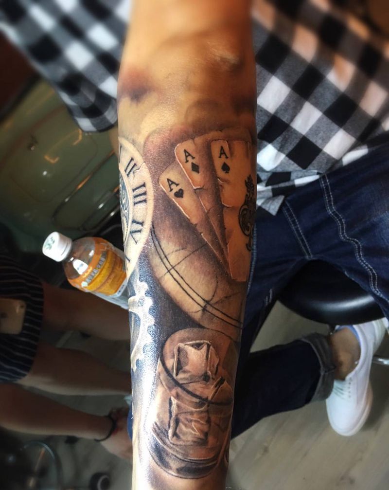 当前位置: 首页 >广东省深圳市纹身店-肆月TATTOO纹身图案>半臂纹身图片_成品手臂欧美肖像写实静物鬼神字符原创几何纹身图案