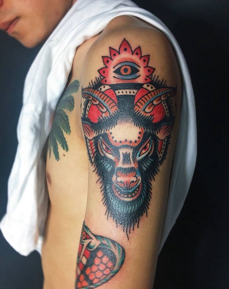 school纹身图片_手臂欧美鬼神动物清新成品纹身图案