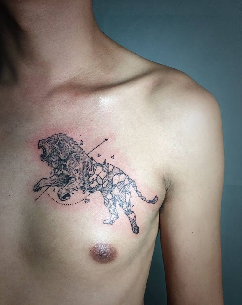 几何狮子纹身图片_胸部图腾几何小清新纹身图案