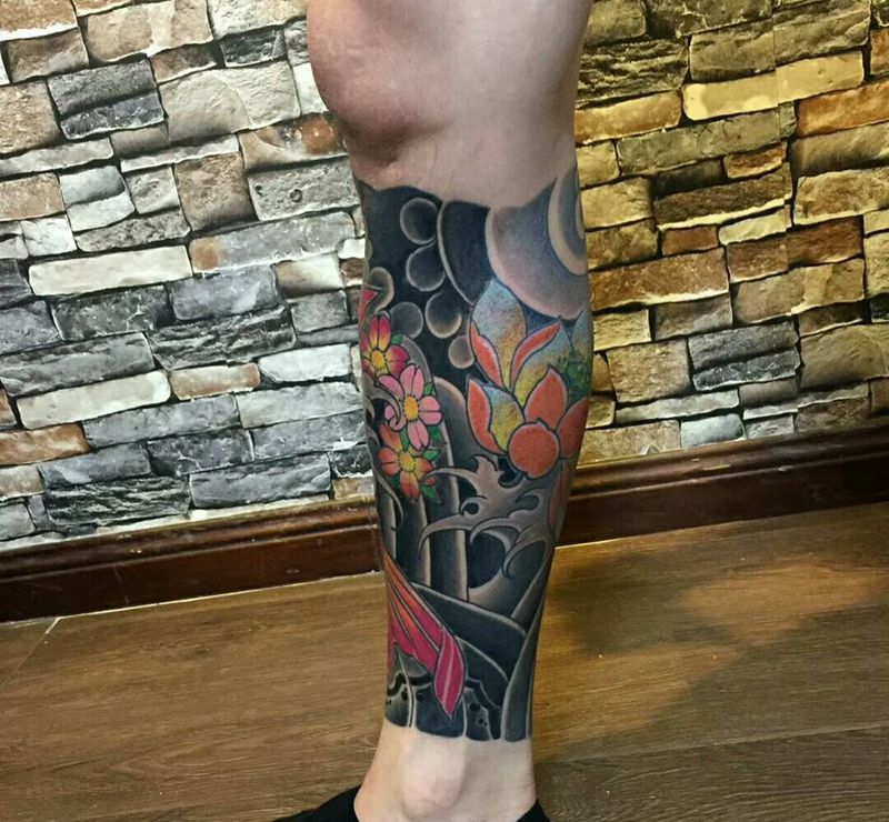 • T网红王老大花腿龙纹身图片_腿部新传统纹身图案