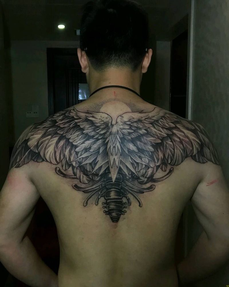 黑灰满背纹身图案