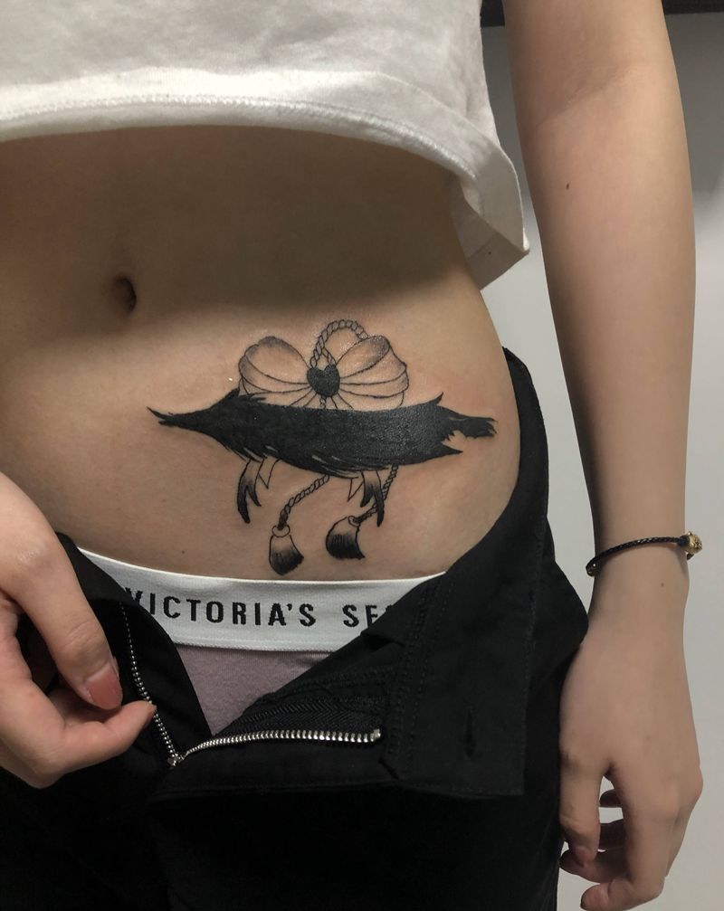 当前位置: 首页 >广东省深圳市纹身店-樱花堂刺青纹身图案>蝴蝶结纹身图片_腹部纹身图案