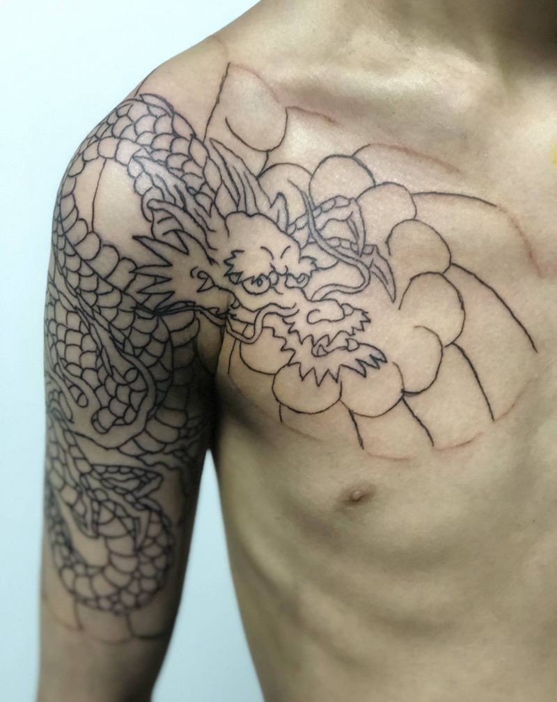 日式半胛(龙)纹身图片_手臂胸部老传统纹身图案