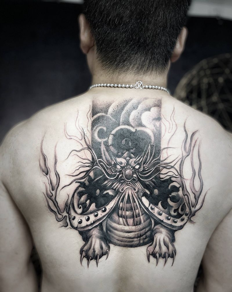 当前位置: 首页 >广东省深圳市纹身店-初见刺青纹身图案>遮盖纹身图片_背部新传统点刺纹身图案