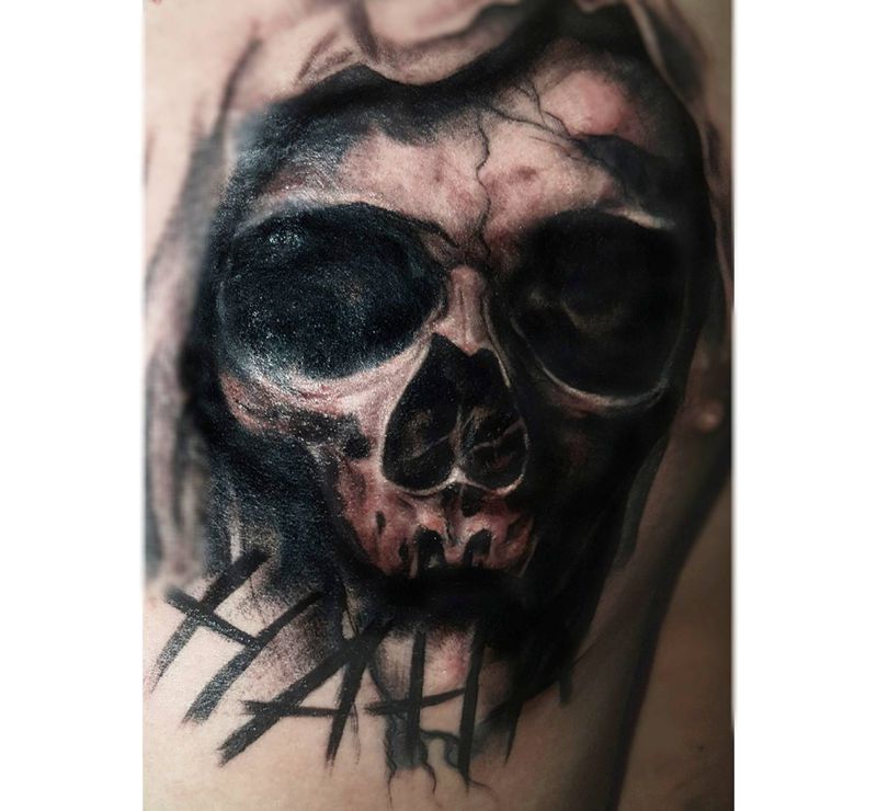 当前位置: 首页 >广东省深圳市纹身店-初见刺青纹身图案>旧图遮盖纹身图片_胸部背部欧美写实人物鬼神成品纹身图案