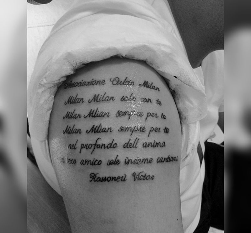 当前位置: 首页 >广东省深圳市纹身店-初见刺青纹身图案>意大利文?纹身图片_手臂欧美清新字符成品纹身图案