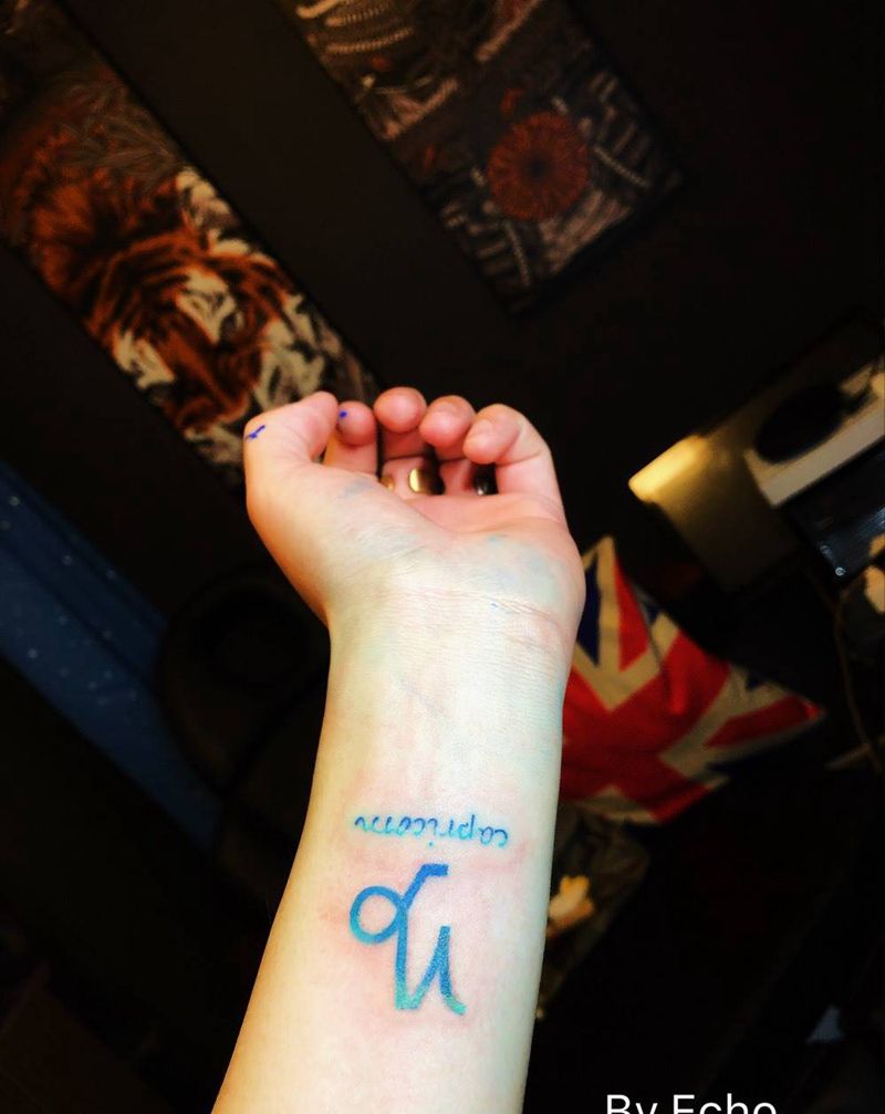 星座渐变纹身图片_几何字符原创情侣清新手臂手部成品纹身图案