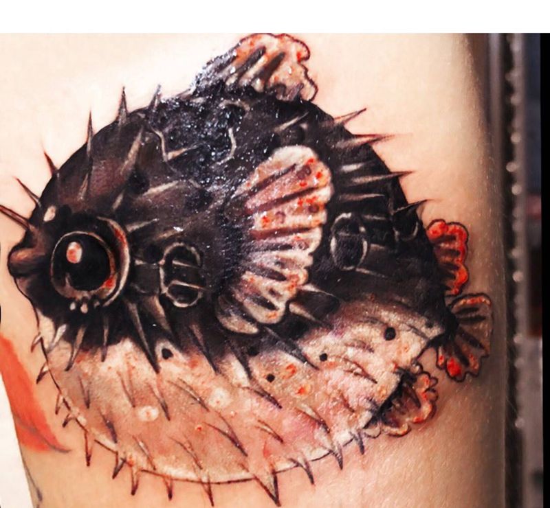 当前位置: 首页 >广东省深圳市纹身店-初见刺青纹身图案>小河豚纹身图片_清新写实手臂成品手部动物原创纹身图案