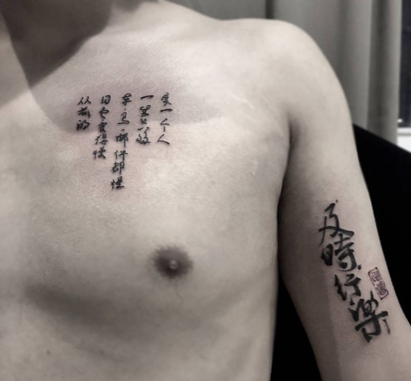 汉字纹身图片_胸部手臂老传统中国风文字纹身图案