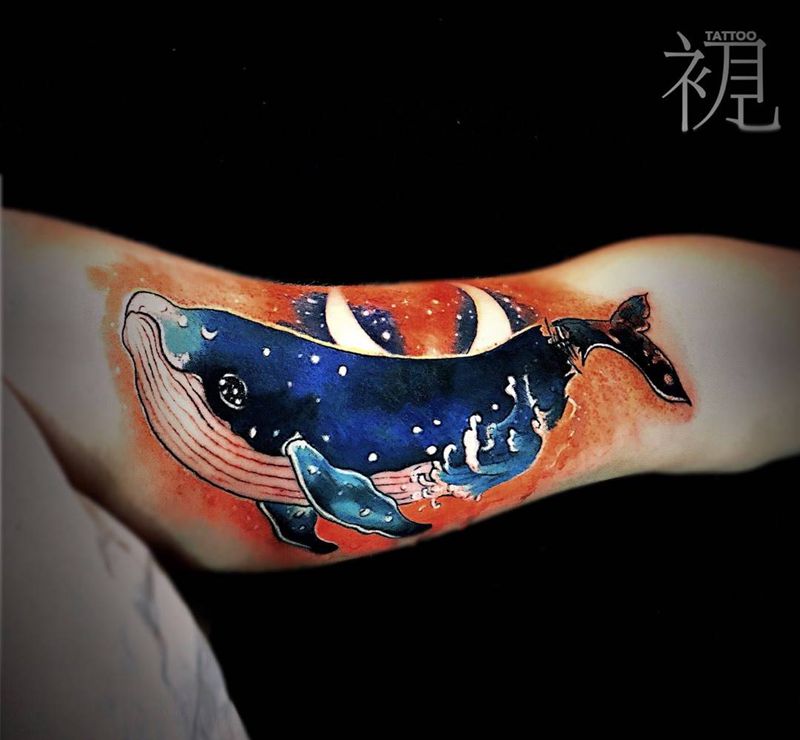 遮盖星空鱼纹身图片_手臂New School水彩遮盖彩色鱼纹身图案